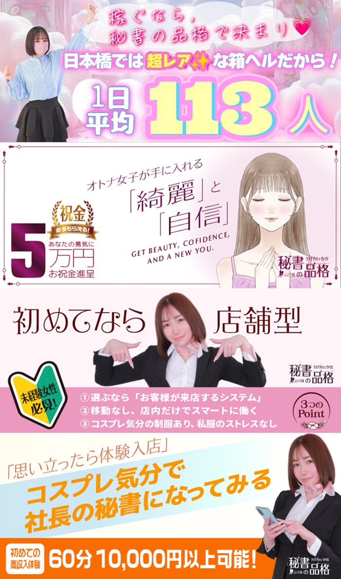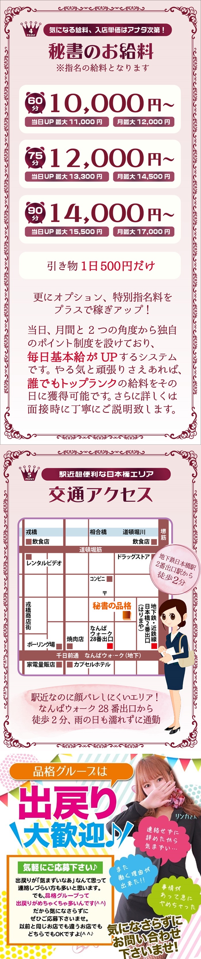 大阪日本橋の風俗求人|箱ヘル求人・店舗型ヘルス 秘書の品格のリクルートページへようこそ。 当サイトはアダルトコンテンツを含みますので、18歳未満の方の閲覧はお断りいたします。